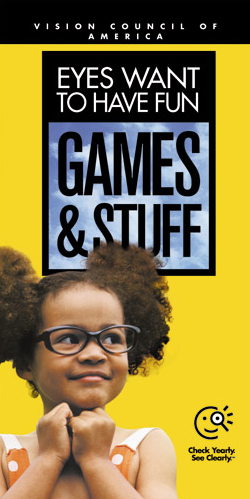 Brochure designed to educate young children about vision care. Games and puzzles were included inside which relate to eye health.